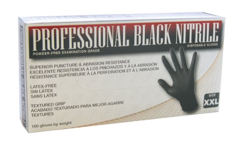 SAS Safety 66544 Professional Nitrile Powder-Free Exam Grade Gloves, Black, X-Large, 100-Pack
