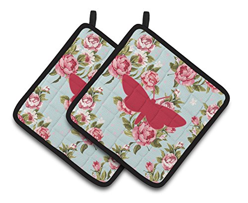 Caroline's Treasures Moth Shabby Chic Blue Roses Pair of Pot Holders BB1059-RS-BU-PTHD, 7.5HX7.5W, Multicolor