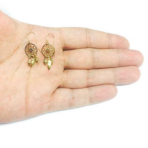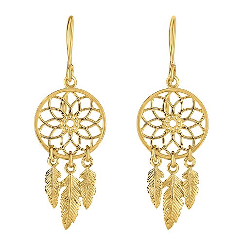 You'll want to sweep your hair up to showcase the glittery movement of these "Dream Catcher" chandelier earrings. Featuring a flower center piece with multiple hanging feathers motif, these chandelier earrings are a perfect addition to anyone's jewelry collection. These 14K yellow gold French wire back earrings come in a elegant gift box.Feature
