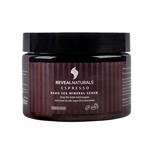 Reveal Naturals Body Scrub - Coffee Arabica Expresso Face Scrub -Dead Sea Salt Facial Scrub Helps with Acne - Spider Veins- Cellulite Treatment - 12 Ounces