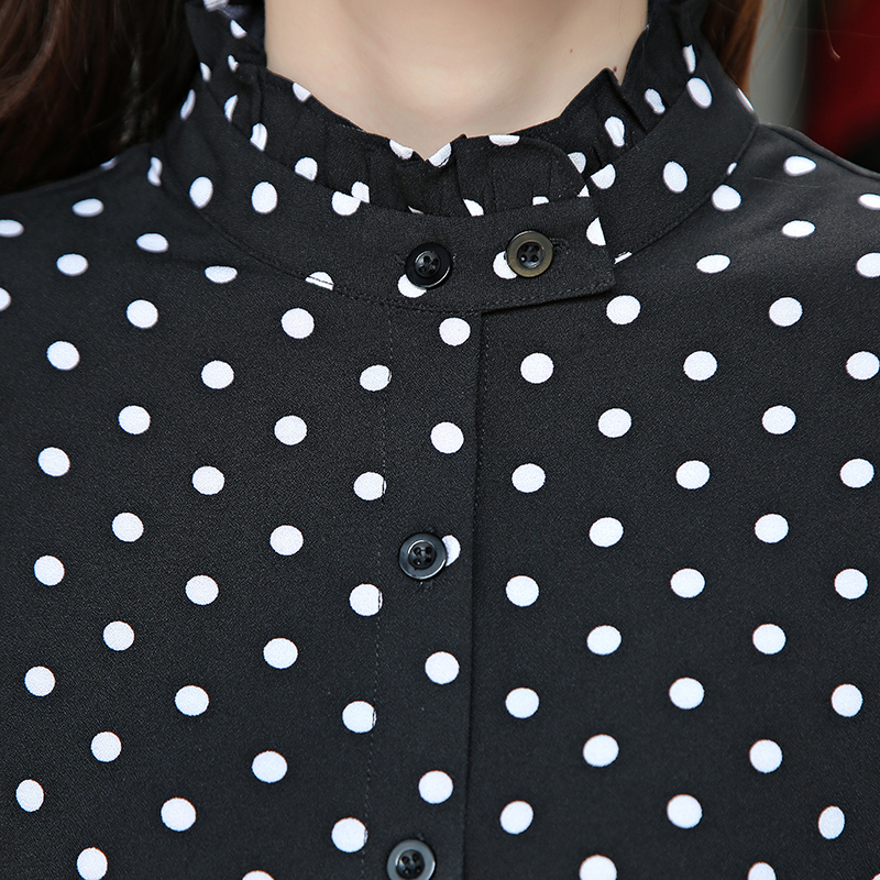 シャツ 長袖 ブラウス スタンドカラー フリル袖 シンプル ドット 水玉 キレイめ