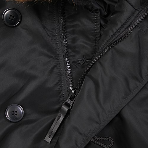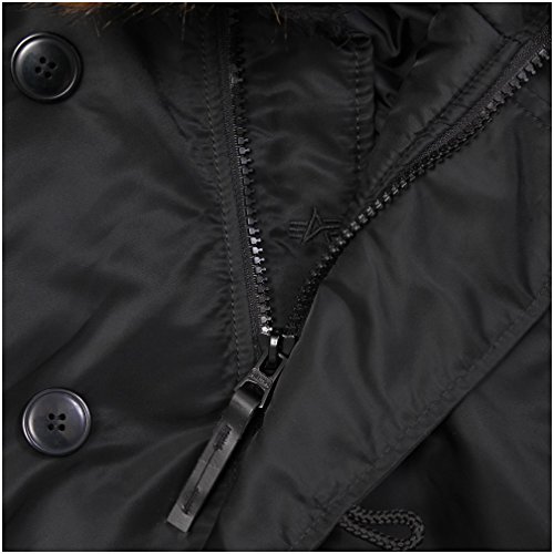 Studio : Alpha Industries Publisher : Alpha Industries Binding : Apparel Product Description Looking for a durable cold-weather parka that's fashionable and our warmest yet? The USAF N-3B parka fits the bill. This snorkel parka features reinforced elbow patches, a full-length storm flap and inset knit cuffs for durability and protection against the elements. The N-3B parka's nylon outer shell/polyester interlining ensures that no cold air seeps in. Our hood is lined and trimmed with synthetic fur, complete with adjustable draw cord/take-up strap. This men's jacket is standard fit so we recommend you buy your typical size. Alpha Industries is a 55-year-old heritage military company that originally supplied the United States Armed Forces with durable outerwear. Now you can own an authentic parka made to the same high quality standards demanded by the US military. Each parka is uniquely designed and inspired by an iconic jacket in Alpha Industries history. We invite you to be a part of this history today. Keywords: N-3B, parka, snorkel parka, military jackets, Alpha Industries, men's outerwear, US Air Force 0