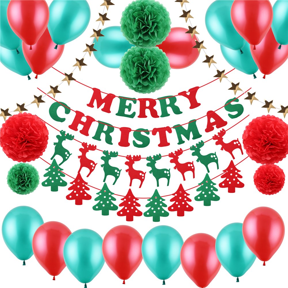 【セット内容 詳細3】<ゴルード星ガーランド> サイズ約10×10㎝、長さ約3M、約27ピース 星があります。<風船デコレーション> レッド、グリーン 各10個ずつ、計20個