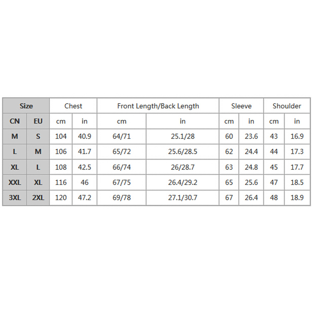 Size: M(CN),S(EU) / L(CN),M(EU) / XL(CN),L(EU) / XXL(CN),XL(EU) / 3XL(CN),2XL(EU)(optional)