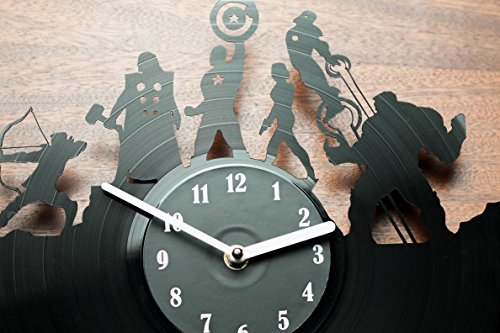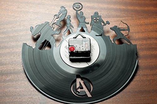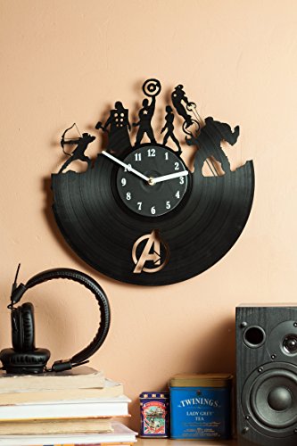-. Binding : Kitchen -. Color : Black -. EAN : 0641022852996 -. Feature : It's creative - the clock is made of a record, and vinyl records themselves are very beautiful / It has the silent mechanism - no "tick-tock" will get on your nerves / It's an unusual gift; musicians and music lovers will be especially surprised to get it / It's an amazing interior decoration. / It's a little contribution to the environmental protection - the use of recycled products -. IsAutographed : 0 -. Label : secondlifeforvinyl -. Manufacturer : secondlifeforvinyl -. PackageQuantity : 1 -. ProductGroup : Home -. ProductTypeName : HOME -. Publisher : secondlifeforvinyl -. Size : 12" -. Studio : secondlifeforvinyl -. Title : secondlifeforvinyl Avengers Vinyl Record Clock -. UPC : 641022852996