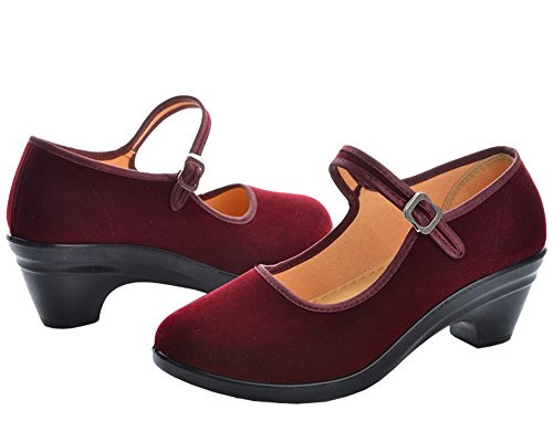 Women's Velvet Mary Jane Modern Dance Shoes Kitten Heel Outdoor Walk Casual Shoes