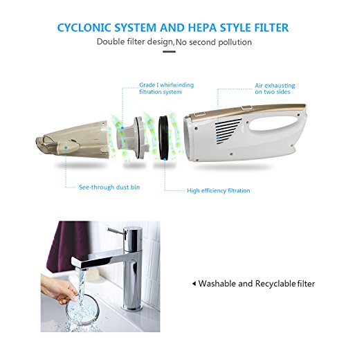 Comfortable handhold give you better cleaning experience. Easy Maintenance: Washable dust collector and filter can be easily disassembled for cleaning.