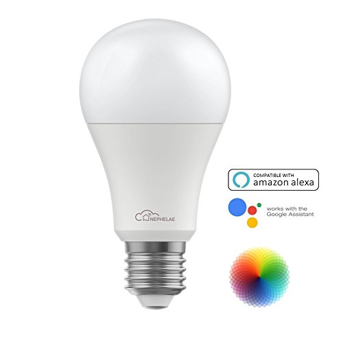 Nephelae Smart Wi-Fi LED Bulb,Multicolored Home Light,Dimmable,Tunable Warm White & Color,No Hub Required,Remote Control,Compatible with Alexa and Google Assistant,60W Equivalent(7W)