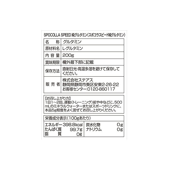 원본상품명: SPOCOLLA SPEED 純グルタミン 200g ??製造の高品質高純度