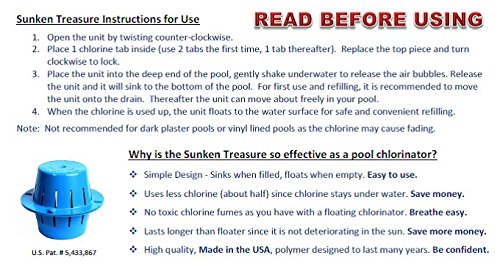 Sinking Chlorine Dispenser [Sunken Treasure] - Sinks, Sanitizes Pool Water, Then Floats for Refilling - Uses LESS Chlorine (Light Blue)