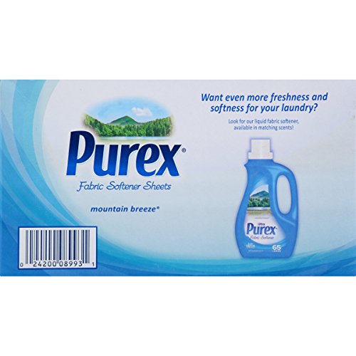-. Binding : Health and Beauty -. Brand : Purex -. EAN : 0024200089931 -. Feature : A convenient way to add a refreshing scent while reducing static cling to any load of laundry / Keep your whole house smelling fresh! just choose your favorite fragrance and tuck a sheet in hampers, in the linen closets, and any other laundry storage areas / Heighten your senses with the refreshing outdoor scent of crisp mountain air and sP.R.Ingtime floral blooms -. Label : Dial Corporation -. Manufacturer : Dial Corporation -. PackageQuantity : 1 -. ProductGroup : Pantry -. ProductTypeName : HEALTH_PERSONAL_CARE -. Publisher : Dial Corporation -. Studio : Dial Corporation -. Title : Purex Fabric Softener Dryer Sheets, Mountain Breeze, 40 Count -. UPC : 024200089931