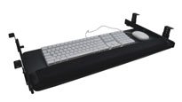 -. Feature : Color: Black / Size: 1"H x 28"W x 16.25"D / Holds a 27"w x 11"d keyboard tray and mouse. / Lock out feature ensures tray will not retract back under work surfact until pushed back. / Covered in a durable black vinyl.