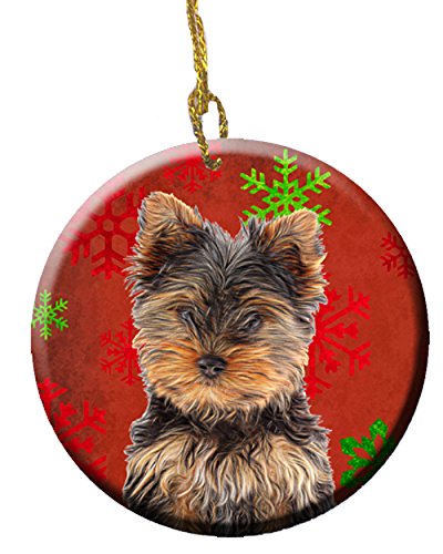 Red Snowflakes Holiday Christmas Yorkie Puppy / Yorkshire Terrier Ceramic Ornament KJ1188CO1