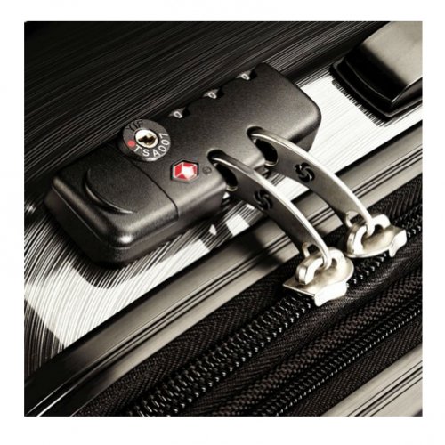 -. Feature : Squared full-capacity design / Full-zip interior divider with organization pockets / Side mounted tsa lock / Oversized 10 zippers / Expands for added packing capacity