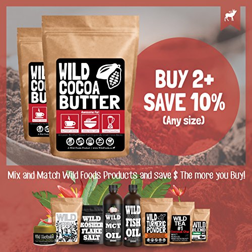 THE HIGHEST QUALITY CACAO BUTER: Wild Cocoa butter is Fair Trade, raw, non-deodorized and unrefined, and as a result, it blends easy and melts wonderfully for inclusion in your favorite recipes, smoothies, shakes and coffee!