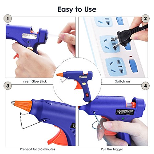 - 【HEAT UP FAST AND CONSTANT TEMPERATURE】This hot glue gun set heats up in 1.5-3 minutes and keep constant temperature making it a perfect tool for school DIY, small arts & craft making. It can be used as an repairing tool for small cracks of furniture, household appliances, toys, shoes, glass fish tank, circuit board, etc.