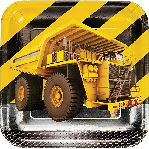 Creative Converting Square Foil Construction Birthday Zone Dinner Plates(8 Count), 9"