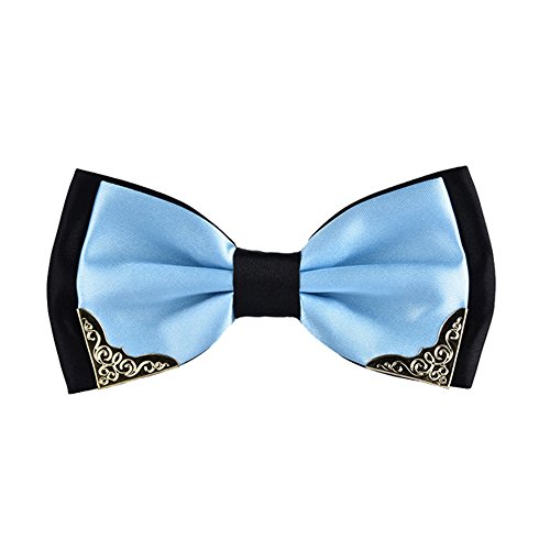 An adjustable elastic band and metal clasp are used to secure the bow tie allowing it to fit any sized neck comfortably.