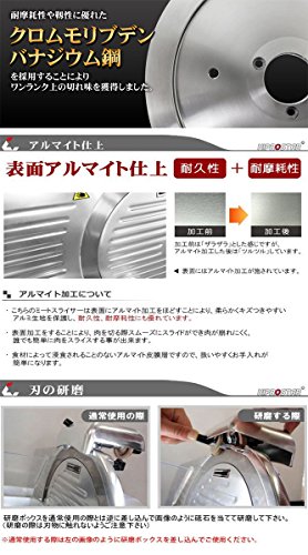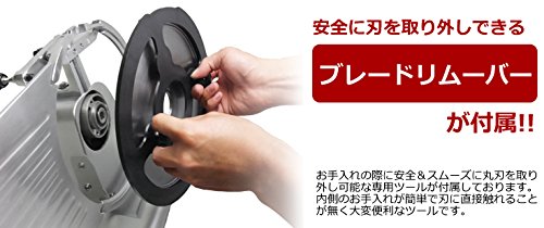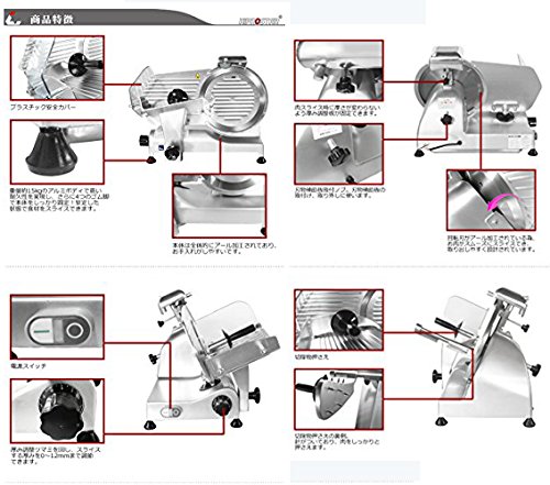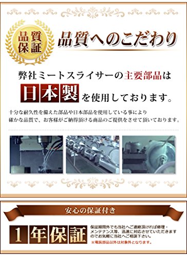 사용 방법:스위치를 넣으면인이 자동으로 회전하기 때문에,고기를 얹은 받침대를 수동으로 슬라이드 하는 것 뿐(만,만큼)!매우 간단하게육의 슬라이스를 할 수 있습니다!※냉동육은 사용 할 수 없습니다.≪반해동(-2℃정도)의 고기의 슬라이스로 최적!≫작은 몸에 대활약!!누구라도 간단하게 쓸만한다!즉 조리장의 전력!손쉬운 작업을 생력화!!