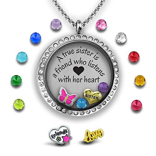 A True Sister is a Friend who listens with her heartFloating Charms Lockets as Sister Gifts