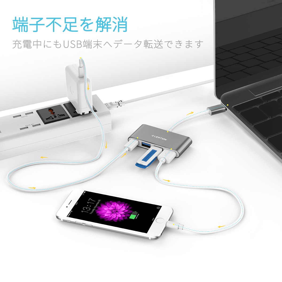 Even while charging, various USB terminals can be operated at the same time, New MacBook users are short of terminals