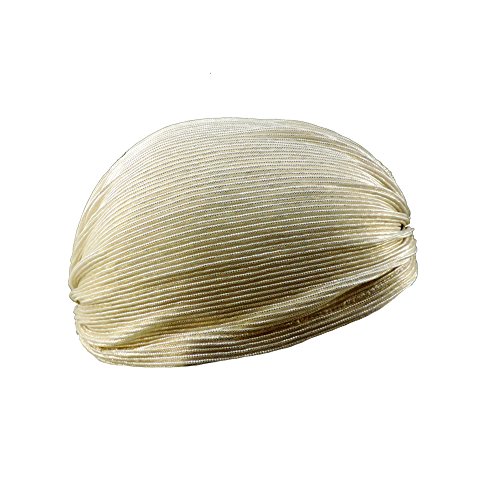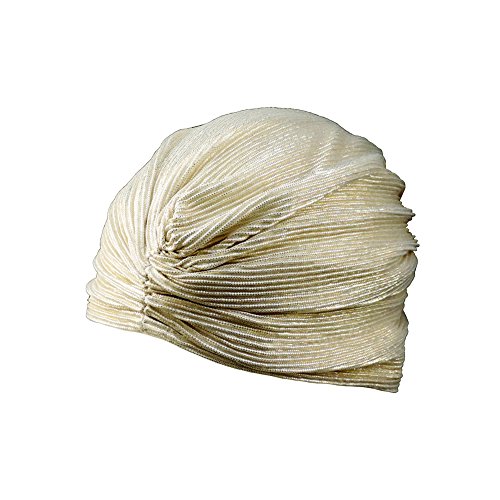 -. Brand : Jacobson Hat Company -. Color : Gold -. Department : unisex-adult -. EAN : 0791082453715 -. Feature : Metallic Gold Spandex Turban / Spandex Material Stretches To Fit Most Adults / Great For Gypsy, Fortune-Teller, & Genie Costumes! / Also Perfect For Holding Hair Under Wigs & Hats / Great For Costumes! -. PackageQuantity : 1 -. ProductGroup : Apparel -. ProductTypeName : ADULT_COSTUME -. Size : One Size -. Title : Vintage Look TURBAN Spandex Pleated Gypsy Costume Accessory Metallic GOLD