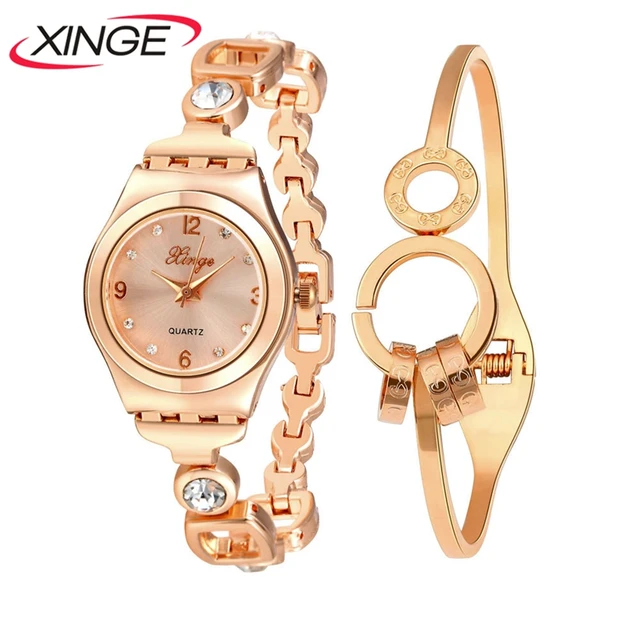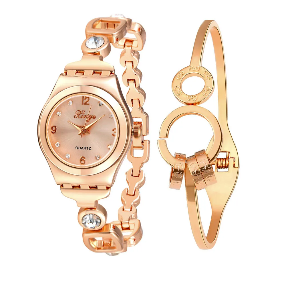 XINGW 우수한 품질 라인 석 시계 여성 스테인레스 스틸 팔찌 시계 여성 드레스 시계 Reloj Mujer 세트 589R