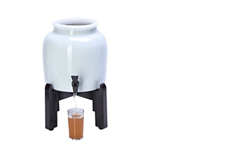 Product Description The porcelain brewer is 2.5 gallons The measurement of the brewer is 1 foot high, 1 foot wide, and 1 foot deep and when you add the stand it only raises the height from 1 foot to 2 feet. 0