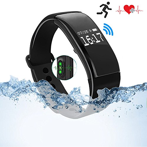 -. Feature : * Waterproof IP67 Rated: Daily wear, unrestrained. Easily deal with all kinds of daily life, such as washing, swimming, rain, etc / * The Main Function: Heart rate monitoring, calories record, pedometer bracelet, find Phone, Call/SMS reminder, sleep quality monitoring, sync date and time ,remind you to get up and go out and breath the air, relax and recharge your heath when you sedentary / * All-day Activity Tracking: Track steps, distance, calories burned, floors climbed, active minutes and hourly activity(Bracelet built-in flash memory, can save up to 7 days of activity data) / * Exterior: OLED Touch Screen ,is not button,The band is made by PU leather and is comfortable and easy to wear ,can be an traditional watch / * System Requirements: Support IOS 8.0 or above (iPhone 4S, iPhone 5/5S/5C, iPhone 6/6S plus etc.); Android 4.4 or above with Bluetooth 4.0 support