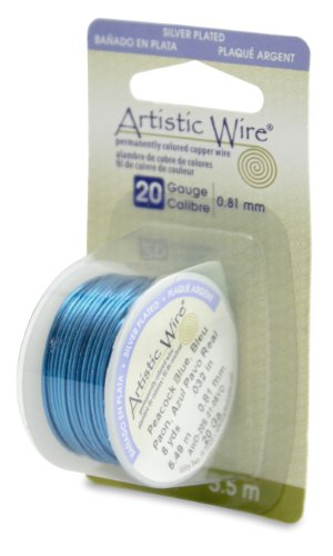 Artistic Wire 20-Gauge Silver Plated Peacock Blue Wire, 6-Yards
