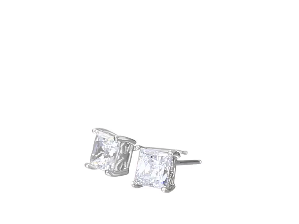 Platinum or Gold-Plated Sterling Silver Swarovski Zirconia Princess-Cut Stud Earrings