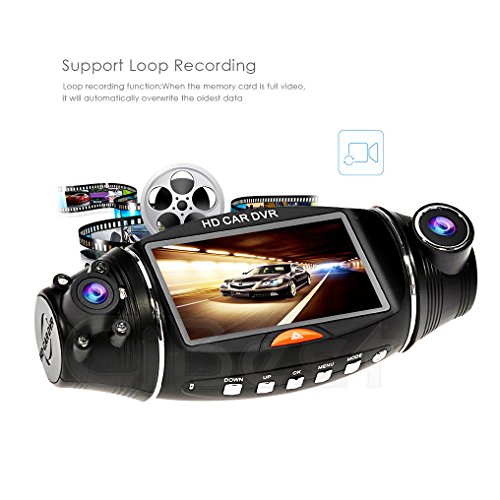 This Car DVR has two cameras that can both be rotated 270 degrees, allowing for recording high definition videos from two different angles.