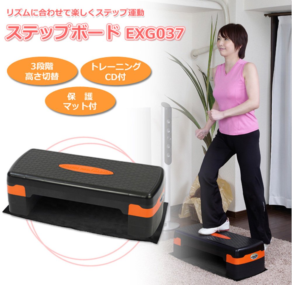 ● Fun step matching according to the rhythm ● Easy so anyone can do comfortable and easy aerobic exercise ● step height is attached to 3 levels with attached block ● training CD with tempo sound comes included ● Protective mat included