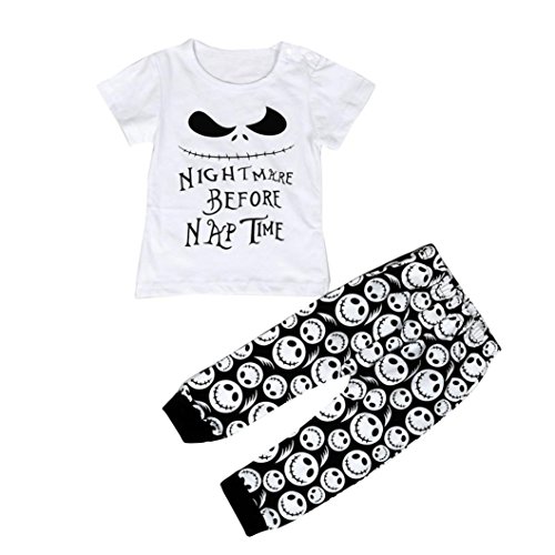 -. Feature : NOTE: Please compare the detail sizes in Product Description with yours before you buy!!! Use similar clothing to compare with the size. / Material:Polyester; Gender:Boys / Style:Occident; Pattern Type: Cartoon P.R.Inted / Sleeve Length:Short Sleeve / Package include:1PC T-shirt+1PC Pants Baby Boy Outfits Set