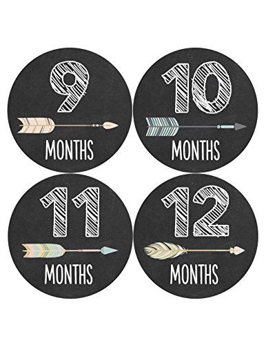 -. Binding : Baby Product -. Brand : Months In Motion -. Department : Baby-girls -. EAN : 0760194481039 -. Feature : Just peel, stick, and take a photo to document your baby's first year! / Makes a wonderful shower gift! / The perfect baby photo prop! / P.R.Inted on white matte sticker so no glare in photos / Includes 12 precut stickers that are approximately 3.93 inch diameter -. IsAdultProduct : 0 -. Label : Months In Motion -. LegalDisclaimer : Stickers are to be used under adult supervision only. Do not leave stickers on baby unattended. -. Manufacturer : Months In Motion -. Model : 1062 -. MPN : 1072 -. PackageQuantity : 12 -. PartNumber : 1072 -. ProductGroup : Baby Product -. ProductTypeName : BABY_PRODUCT -. Publisher : Months In Motion -. Studio : Months In Motion -. Title : Months In Motion - Baby Month Stickers - Monthly Baby Sticker for Girls - Tribal Arrows (1106) -. UPC : 760194481039