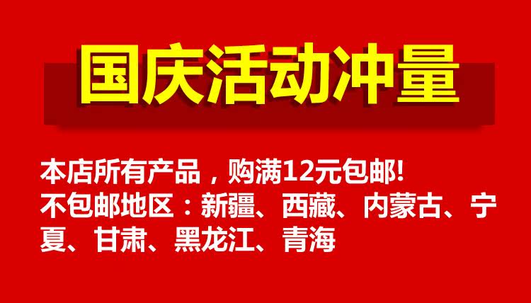 • 单笔订单满12包邮(不包邮地区:内蒙古,黑龙江,西藏,甘肃,青海,宁夏,新疆,台湾,香港,澳门,海外)