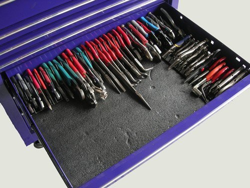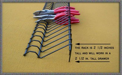 >>BEST Quality and Price in the market! - ML Tools Pliers Cutters Organizer Rack This will keep your pliers in place when you shut the drawer. Any length pliers will fit in the rack. You can easily cut the rack to fit any size drawer. Remember there are extra wide spaces on one side for pliers with insulated handles, be sure to cut and leave what you need. You can also install the rack on the side of the drawer, but it must be secured to the drawer.
