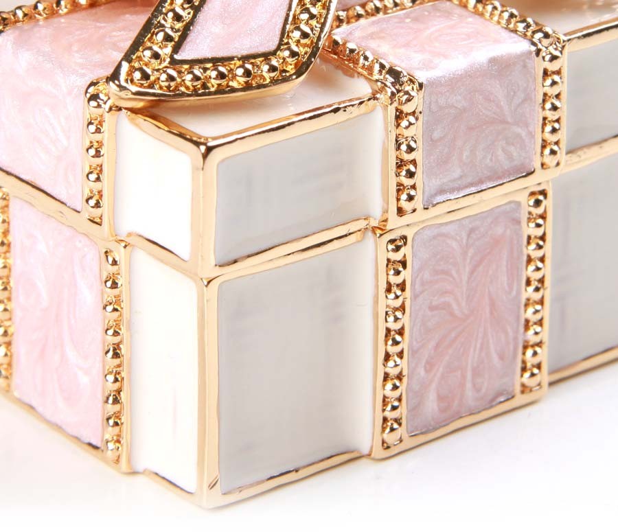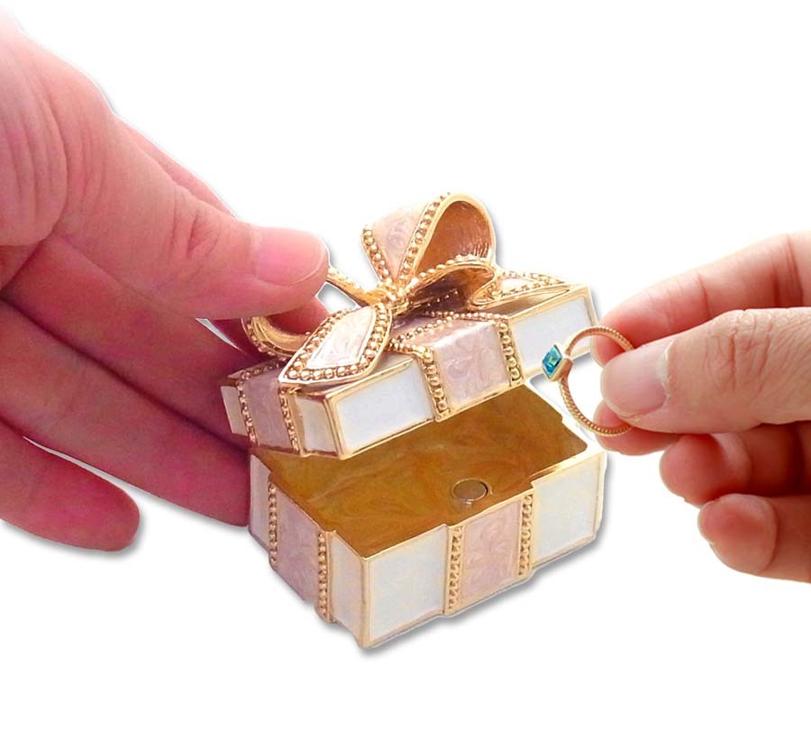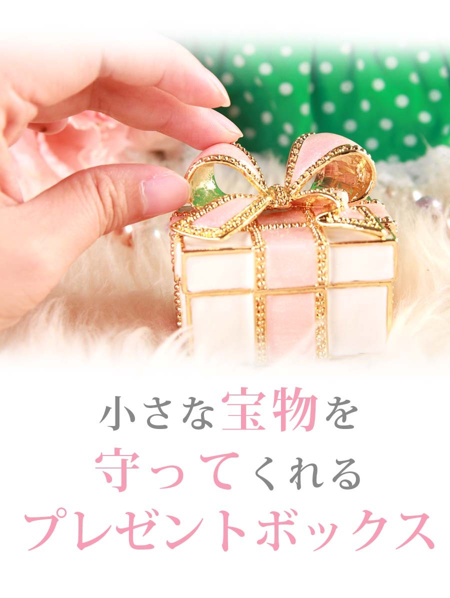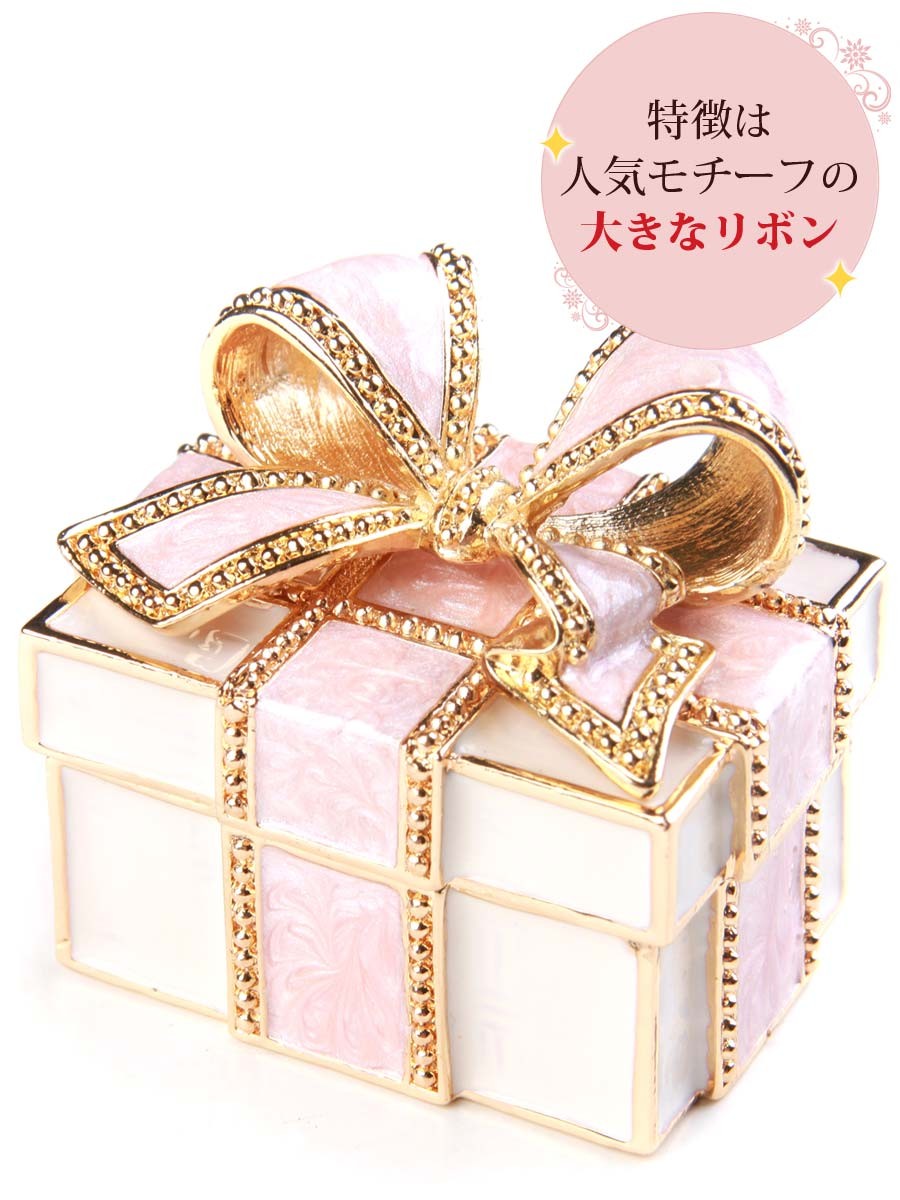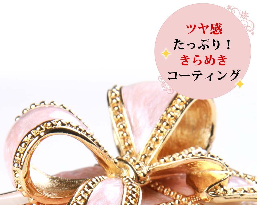 | ジュエリーボックスと言えば、指輪やピアス、ネックレスなどのアクセサリーを入れる引き出し型のケースを思い浮かべる方が多いかもしれません。 ピィアースのジュエリーボックスは、動物や花などをモチーフに作られ、合金製でずっしりとした重さがあります。また高品質のクリスタルガラスを贅沢に使用。まるでジュエリーボックスそのものが宝石のような、高級感溢れる仕上がりです。 小物入れとしても使えるように開閉口には磁石が取り付けてあり、アクセサリーなどなくしやすいアイテムの収納ができます。キラキラと美しく輝く宝石箱は、そのまま飾って楽しめるインテリア雑貨として多くの方に愛されています。 国内トップクラスのジュエリーボックスメーカーであるピィアースは、2004年ごろから本格的に宝石箱の製造を始め、現在のジュエリーボックスはなんと300種類以上。大規模展示会でもご好評いただいており、全国有名百貨店でも販売されています。 自社工場でひとつひとつ丁寧に手作りし、原型作成、研磨、加工、着色、小さなクリスタルガラスの取り付けなども全て手作業で行われるこだわりのハンドメイド品。完成後は厳しい検品の後、丁寧に梱包作業をしお客様にお届けしております。 ピィアース商品は、全国有名百貨店および全国有名宝石店チェーンにてお取り扱いいただいている高品質商品です。 ★自分へのご褒美に…コレクションして並べて飾ると、さらにかわいらしさUP! ★恋人へのプレゼント…中にアクセサリーを入れて、サプライズな贈り物として ★家族への感謝ギフト…お母さんや姉妹へ、日頃のありがとうの気持ちを込めて ★誕生日プレゼント…お友達の喜ぶ顔が見たいから、いつもと違うキラキラギフトを ★小さな女の子へ…まるでお姫様が使っているようなキラキラ宝石箱は女の子の憧れ! |