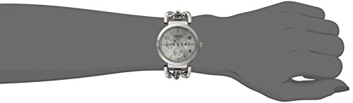 -. Feature : Round watch in silver tone featuring logoed dial with multifunctional chronograph subdials and crystal markers at 12 o'clock and 6 o'clock / Japanese-quartz movement with analog display / Mineral crystal dial window and 38 mm case diameter / Features rose-tone link bracelet with jewelry-clasp closure / Water resistant to 10 m (33 ft)