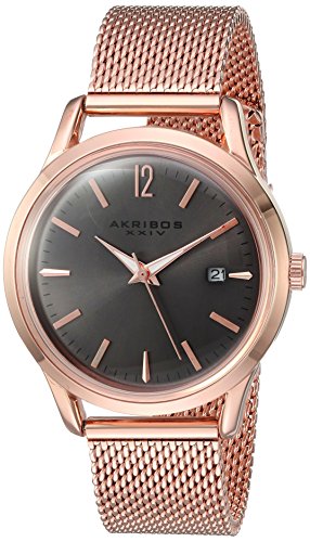 -. Title : Akribos XXIV Women's Quartz Rose-Tone Case with Rose-Tone Accented Black Sunray Dial on Rose-Tone Stainless Steel Mesh Bracelet Watch AK930GY