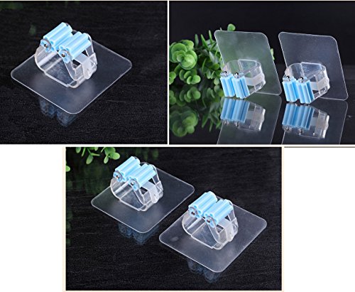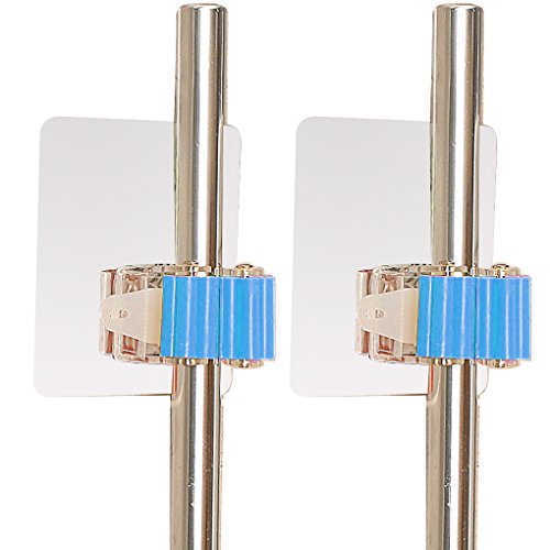 SUOWO Adhesive Mop and Broom Gripper Organizer Storage holder Clip Screw Free Wall Mounted Bathroom Kitchen Garden Tool Organization No Slip 2 Pack (Clear Blue)