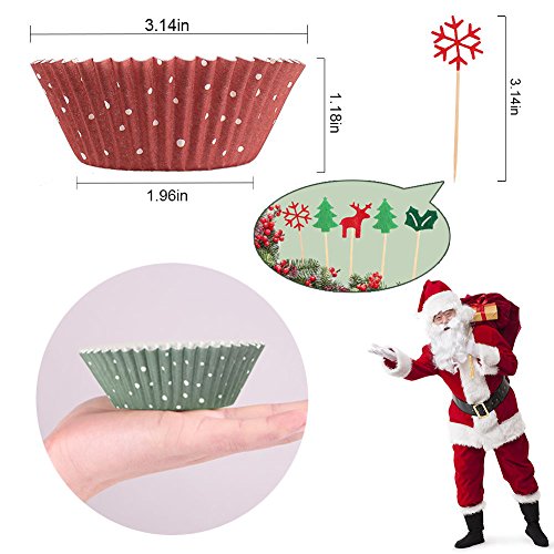Christmas Cupcake Series: 2 Polka dots colors + 4 kinds of Christmas Motive Cake Toppers,it is perfect for Christmas decoration.Christmas Cupcake Liners come in handy for a variety of all season long for everything from fancy parties to everyday baking.