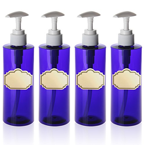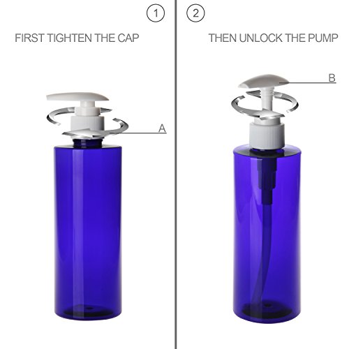 Yilove 4 Pack Plastic Empty Bottles with Lock Pump,Blue, 250ml
