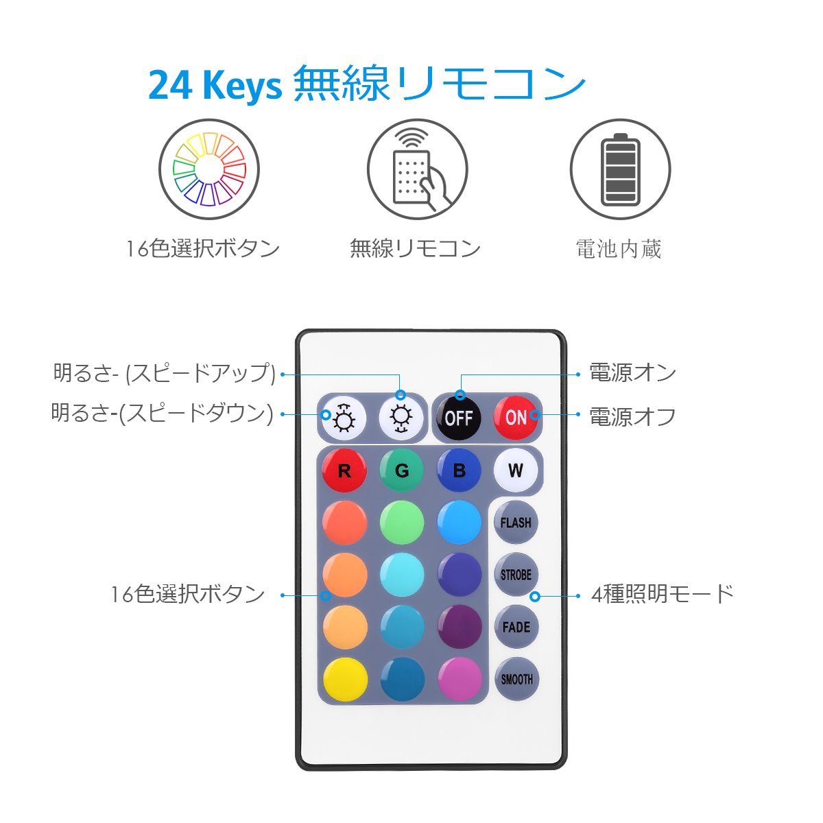 The LED tape light can choose 16 different colors and various modes!