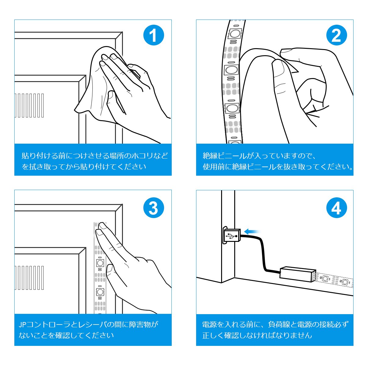 ※ Please do not put the tape light into the water.