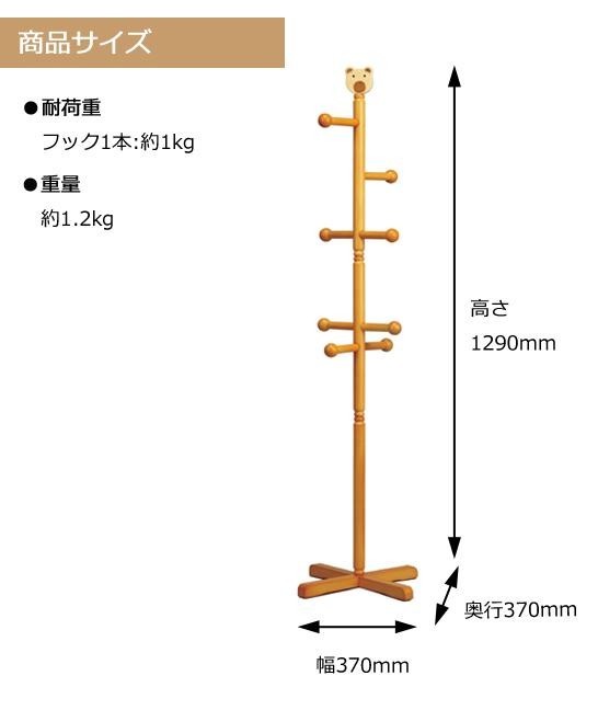 | クマのモチーフがとってもかわいいジュニアハンガー。天然木の優しい風合いのあるハニーブラウン。 お子様の洋服やカバン、帽子をスッキリ収納できます。子供部屋にピッタリの人気商品です。 |