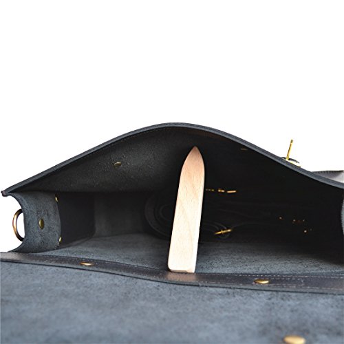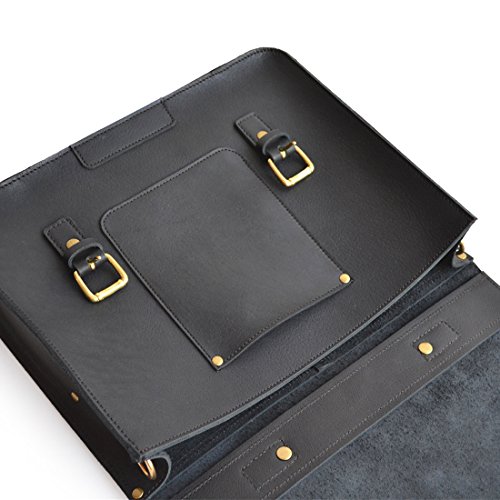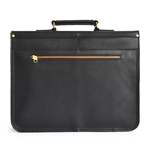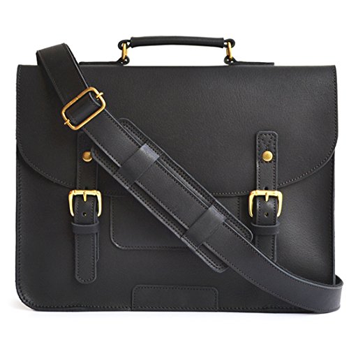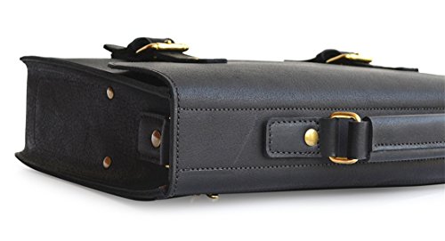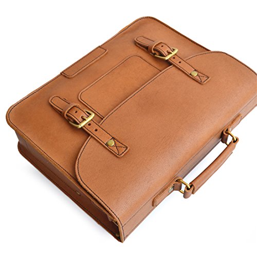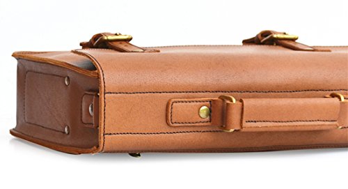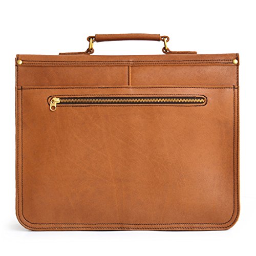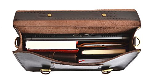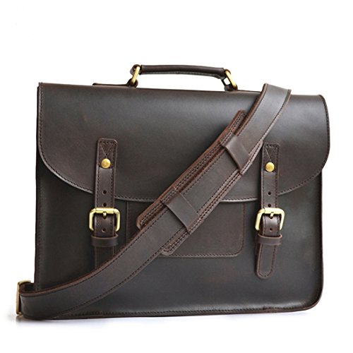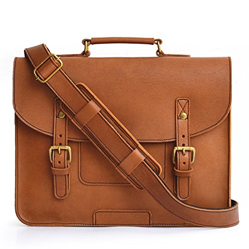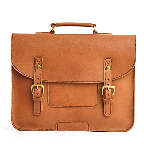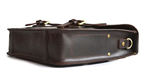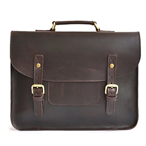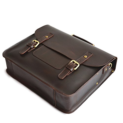 Product Description The Marlondo Leather Company's Entrepreneur Briefcase. This great looking briefcase features two traditional strap/buckle closures on the main flap. When opened there is a small slot pocket on the front which is perfect for business cards or other small items. The spacious main compartment is unlined and large enough to accommodate most 15" laptops (or smaller) along with files, papers, books, and more. The top handle is comfortable for carry or you can choose to utilize the shoulder strap for traditional carry or adjust it out for cross body carry. The rear of the bag features a large zippered pocket that's ideal for traveling...store your plane tickets, your passport, or your favorite crossword book for quick access. The leather used on the Entrepreneur Briefcase is 100% full grain Water Buffalo leather. Water Buffalo leather has been used for decades in jackets and high end luxury bags and accessories (brands such as Coach, Bvlgari, Hermes, and many more). It's known for being thick and durable, yet soft to the touch. It also garners an excellent patina with time and use. **Mannequin in photos is 6' tall. Details: * Dimensions: 15" wide x 11.2" high x 3.1" deep * Weighs approx. 3 lbs 4 oz empty * Interior is unlined * Features brass colored solid metal hardware * Solid brass zipper * Rivets are placed at all stress points for incredible durability and peace of mind * UV resistant marine grade nylon thread is used for all stitching * Removable and adjustable shoulder strap w/ pad - will adjust for cross body carry. Shoulder strap is backed with dark brown webbing. * 100% full grain Water Buffalo leather 0