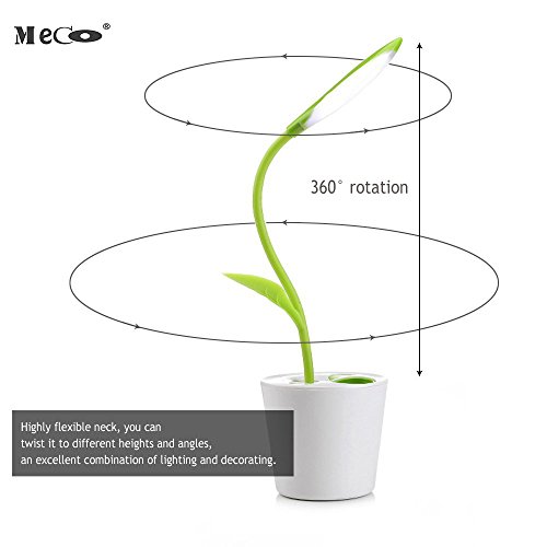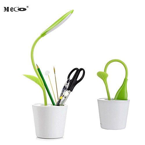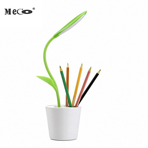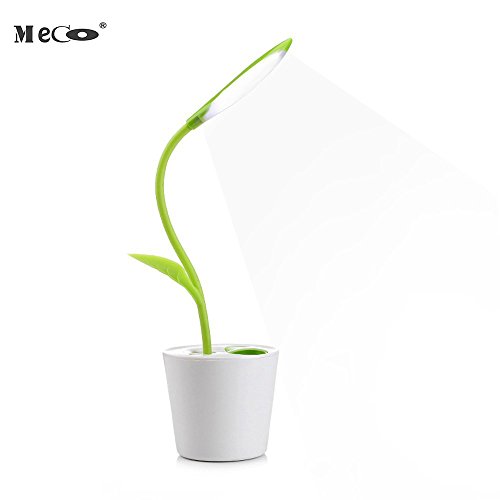 Desk Lamp MECO Working Light USB Rechargeable Desk Light Eye-care studying lamp Flexible Neck 3-Level Dimmer LED reading lamp with Touch-Sensitive Switch and Decor Plant Pencil Holder(Fresh Green)