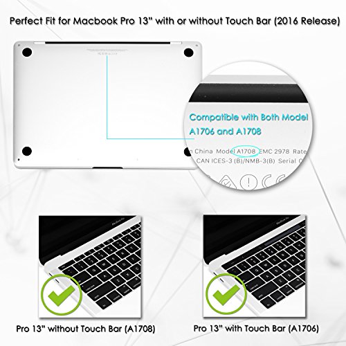 Perfect fit for MacBook Pro 13 Inch Model:A1706 with Touch Bar and A1708 without Touch Bar, Release October 2016 -- MLL42LL/A, MLUQ2LL/A, MLH12LL/A, MLVP2LL/A, MNQF2LL/A, MNQG2LL/A