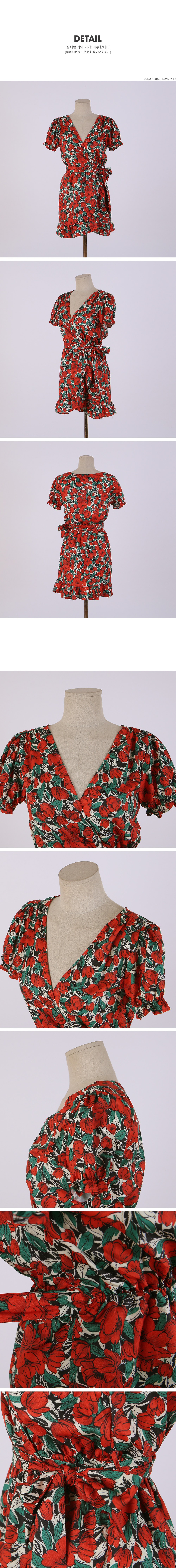 시원한 플라워나염 프린트가 러블리한 랩 원피스를 소개 할게요 미니한 기장감으로 러블리한 디자인의 원피스인데요 탄탄한 폴리소재의 나염원단으로 제작되어 여름에 포인트로 입기 너무 좋아요 미니한 퍼프소매라인과 랩디자인으로된 원피스라인으로 허리선을 사이즈에 구애 없이 잡기 좋아 누구나 착용 하시기 좋답니다 밑단에 프릴 디테일이 들어가 있어 더욱더 러블리해요 모델 착장처럼 심플한 시계와 애나멜 백과 착용 하시면 더욱 스타일리쉬 해요 평소 44반사이즈의 모델은 착용시 여유있게 맞았어요~ FREE(44-66)사이즈로 정사이즈 핏감으로 착용 가능 하세요